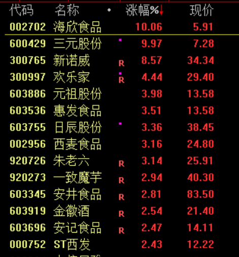 食品等消費股繼續(xù)活躍,三元股份(600429)、海欣食品(002702)等漲停。