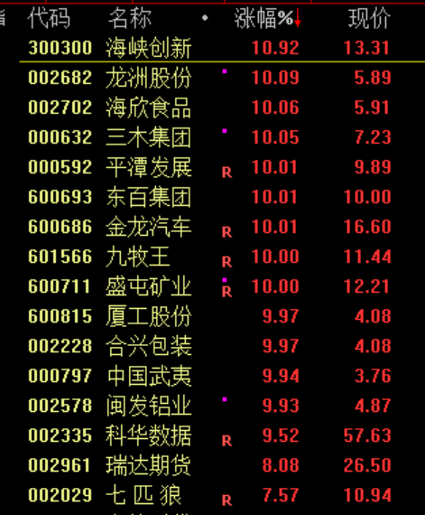 福建板塊持續(xù)走高,廈工股份(600815)、中國武夷(000797)等十余股漲停。