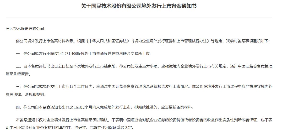 國(guó)民技術(shù)港股IPO獲中國(guó)證監(jiān)會(huì)備案