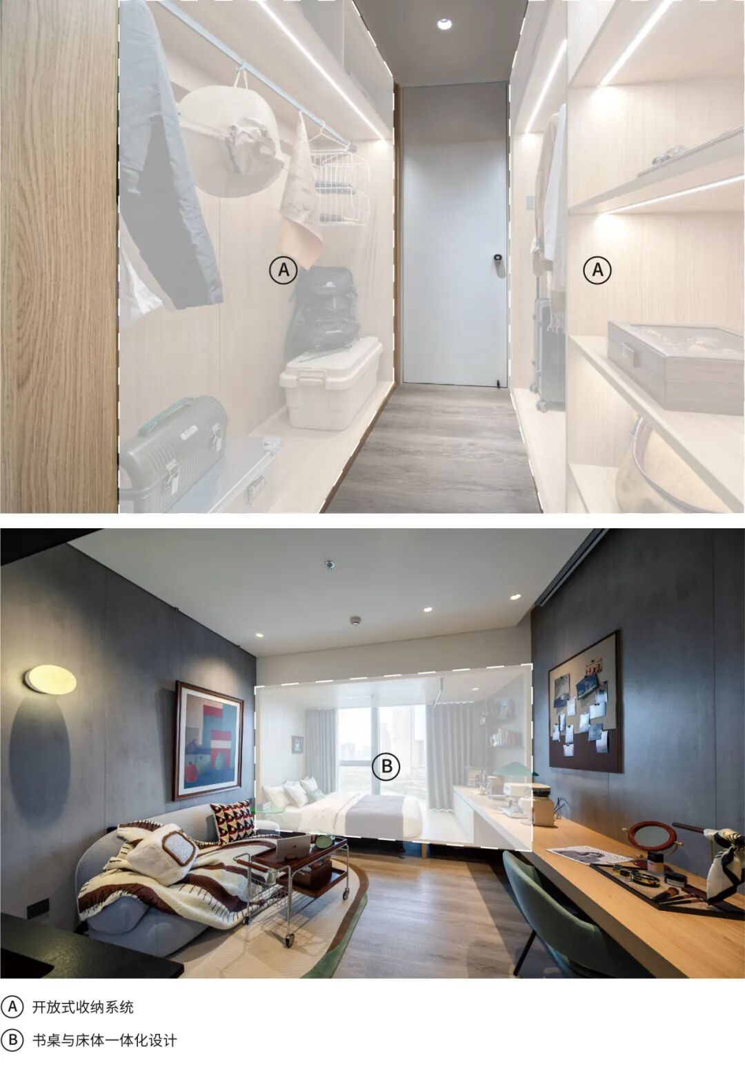 該項(xiàng)目在重視環(huán)保性能的同時(shí),還配備了完善的收納系統(tǒng)和個(gè)性化部品,極大提升了空間的實(shí)用性能。例如,衣帽間采用開放式隔柜與掛衣桿相結(jié)合的設(shè)計(jì),既便于分類收納又方便日常取用,能夠滿足不同居住者的收納需求;臥室區(qū)域采用書桌與床體一體化設(shè)計(jì),既節(jié)省空間又保證功能完整,讓每個(gè)居住單元都能靈活適應(yīng)不同的生活方式,實(shí)現(xiàn)了“好房子”標(biāo)準(zhǔn)的"要實(shí)用"。