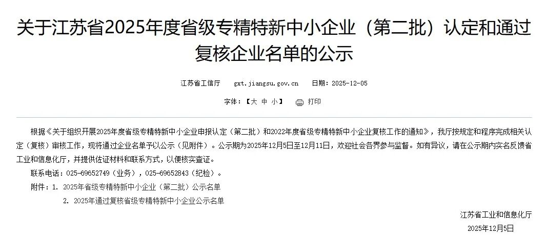 近日,江蘇省工業(yè)和信息化廳正式揭曉“2025年度省級專精特新中小企業(yè)(第二批)”認定名單,沙鋼集團張家港榮盛特鋼有限公司憑借在特鋼細分領(lǐng)域的深厚積淀與創(chuàng)新突破,從眾多企業(yè)中脫穎而出,成功上榜。