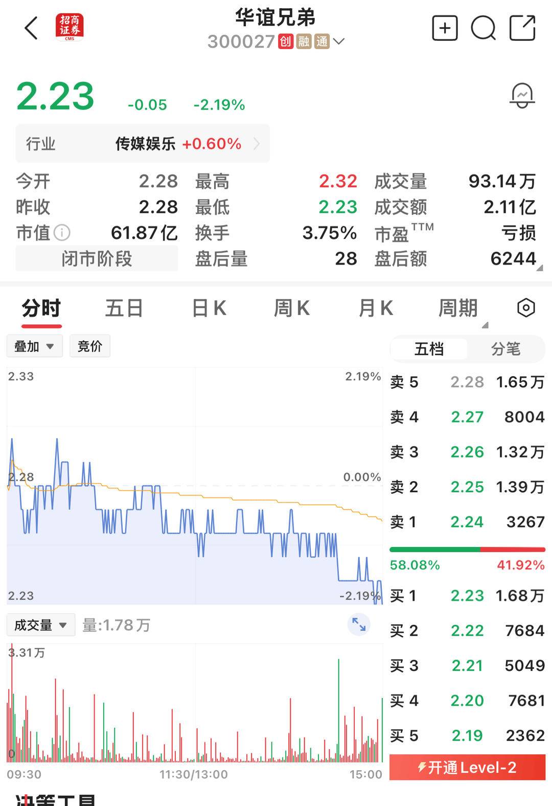 資本市場(chǎng)上,華誼兄弟近年來股價(jià)持續(xù)走低,截至12日收盤報(bào)2.23元,總市值61.87億元,不及巔峰時(shí)十分之一。