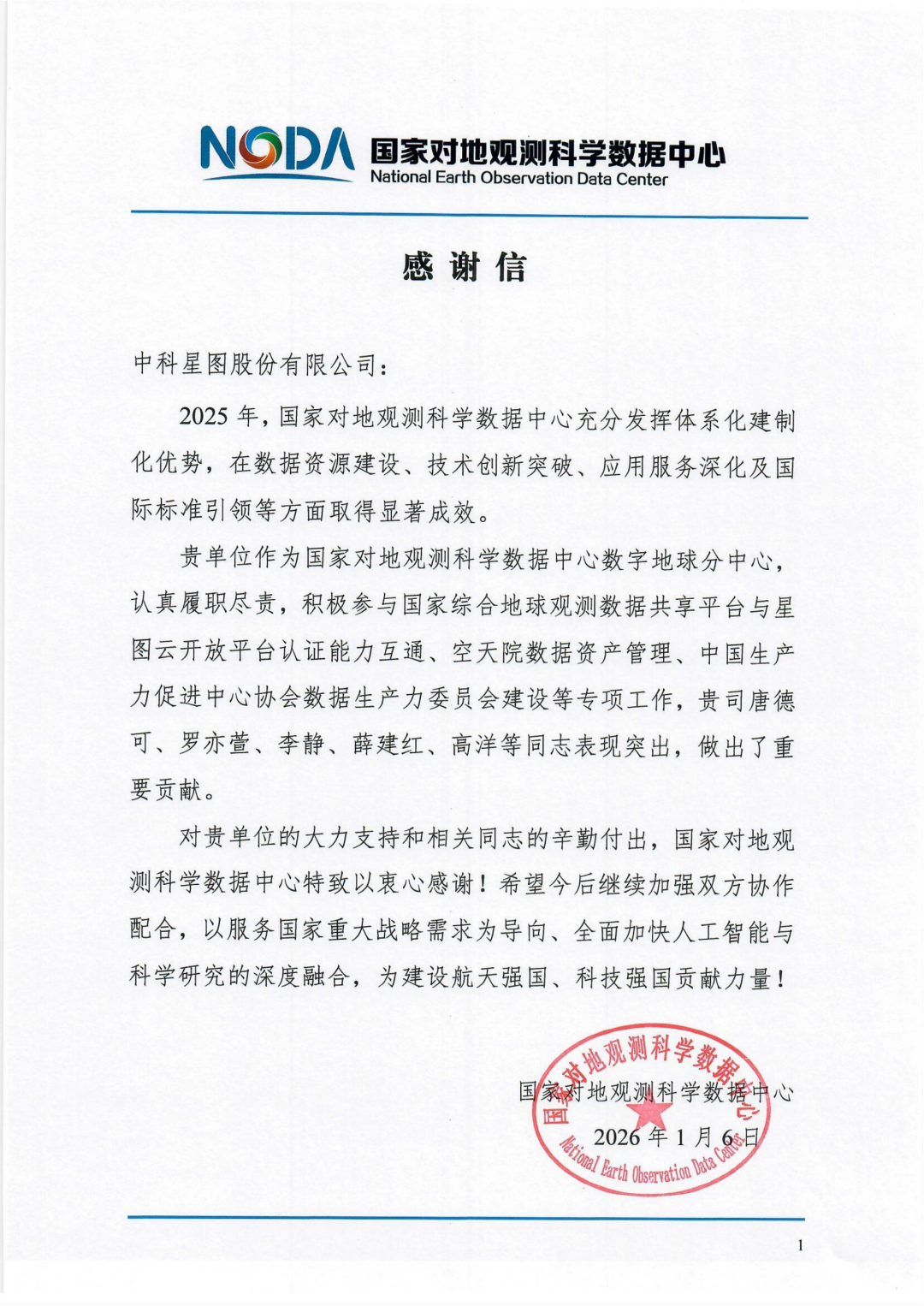 近日,中科星圖股份有限公司(以下簡稱“中科星圖”)收到了來自國家對地觀測科學數(shù)據(jù)中心的感謝信。這不僅是對中科星圖在多項國家級專項工作中辛勤付出的致謝,更是對中科星圖作為國家對地觀測科學數(shù)據(jù)中心數(shù)字地球分中心履職成效的認可。