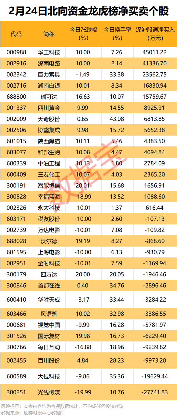今日龍虎榜現(xiàn)身個股中,深股通(885694)及滬股通(885520)席位共現(xiàn)身30股龍虎榜,凈買入居前的有華工科技(000988)、深南電路(002916)、巨力索具(002342)等;凈賣出的有光線傳媒(300251)、大位科技(600589)、百川股份(002455)等。