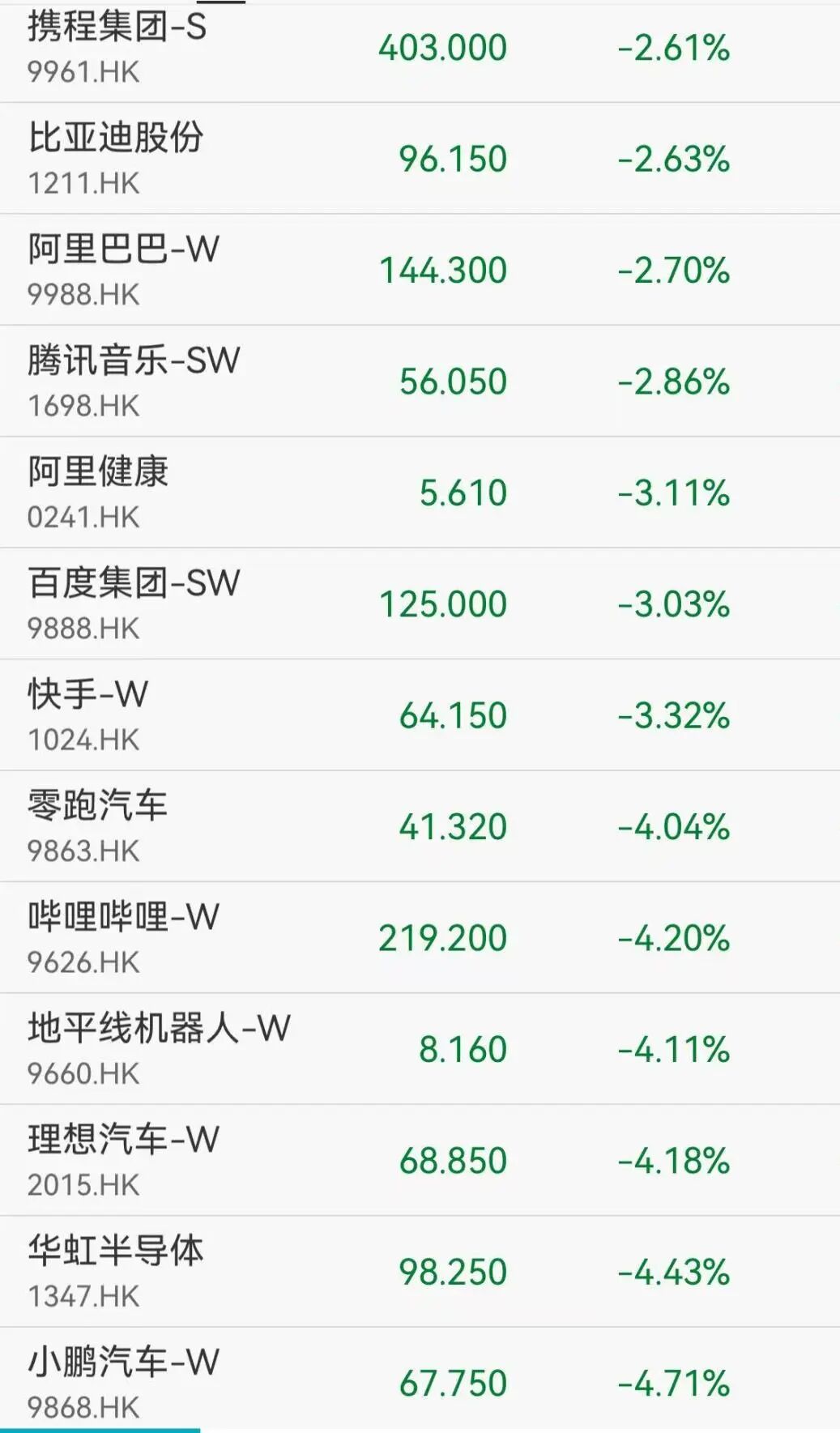 港股科網(wǎng)股集體下挫,華虹半導(dǎo)體(HK1347)、小鵬汽車(HK9868)、嗶哩嗶哩(HK9626)跌超4%,百度(K89888)、快手(K81024)跌超3%,騰訊音樂(TME)、阿里巴巴(BABA)跌超2.7%。