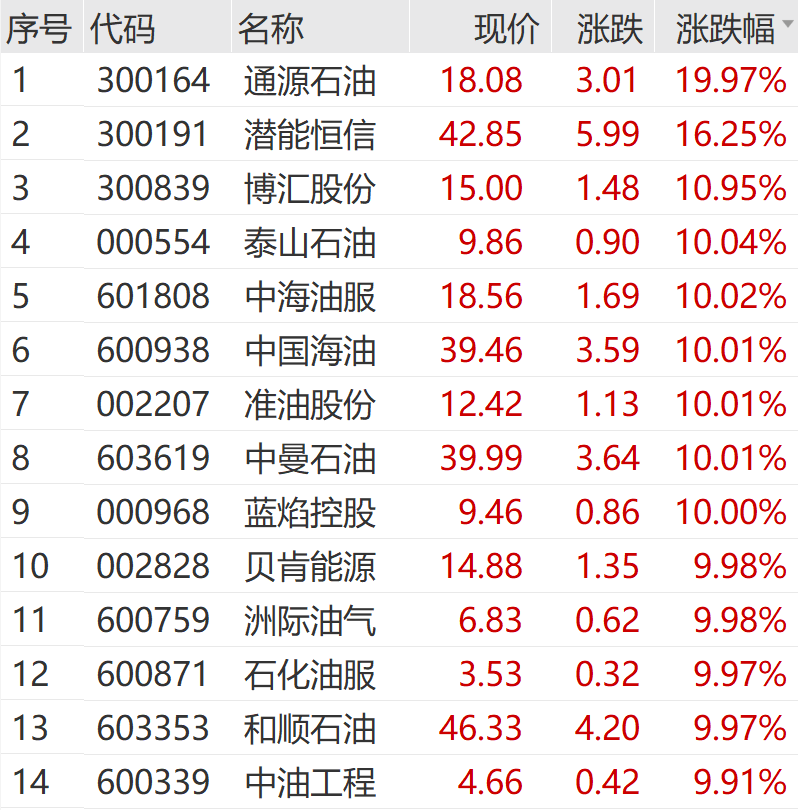 石油石化板塊掀“漲停潮”