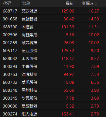 光伏設(shè)備板塊早盤(pán)漲幅排名