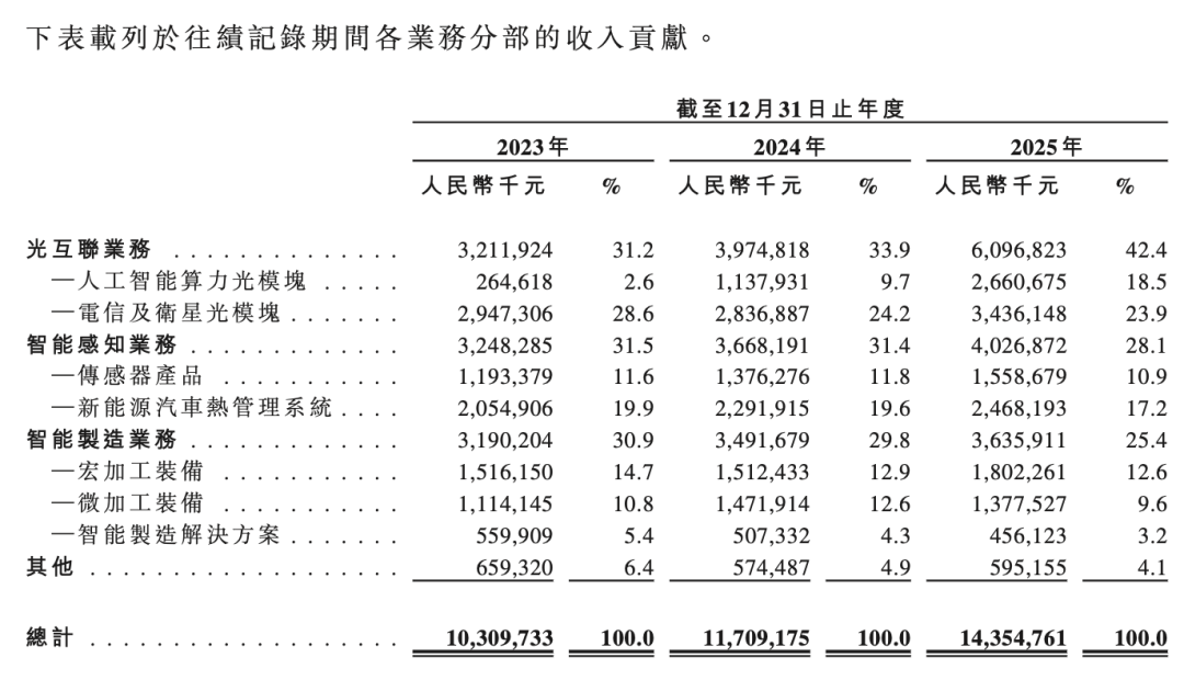 根據招股書,光聯接業(yè)務已取代激光(即智能制造業(yè)務),成為公司第一大收入來源,占比超42%。它不再僅僅是那個幫工廠切鋼板的“大力士”,而是變成了幫數據中心傳輸數據的“極速飛人”。