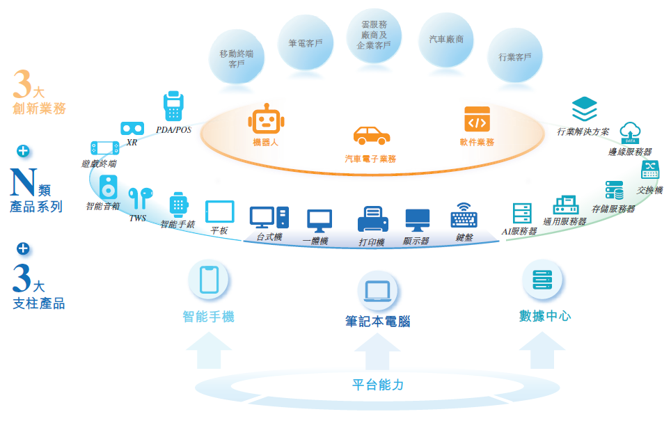 2025年華勤技術(603296)實現(xiàn)營收1714.4億元,同比增長56.0%,歸母凈利潤40.5億元,同比增長38.6%。公司構建了“3+N+3”智能產(chǎn)品平臺。三大支柱——智能手機、筆記本電腦、服務器——構成收入根基;N類延伸——智能穿戴(885454)、打印機、AIoT等多品類——釋放收入彈性;三大創(chuàng)新——汽車電子(885545)、機器人、軟件——開辟新增長曲線。公司是同時在智能手機、平板電腦、智能穿戴(885454)、筆記本電腦和數(shù)據(jù)基礎設施五大領域建立領先市場地位的ODM廠商,2024年全球消費電子(881124)ODM出貨量第一,市場份額22.5%。