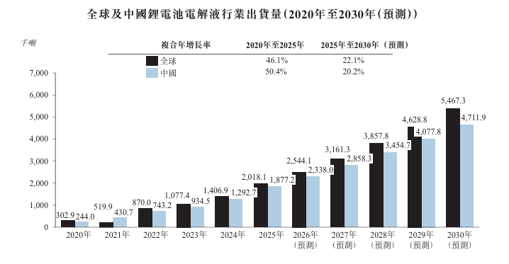 到2030年,全球及中國鋰電池(884309)電解液出貨量預(yù)計將分別達到546.73萬噸及471.19萬噸,2025 年至2030年的復(fù)合年增長率分別為22.1%及20.2%。