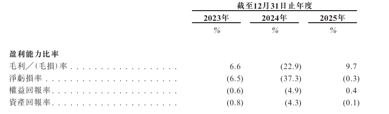 于2023年度、2024年度、2025年度,公司毛利率分別為6.6%、-22.9%、9.7%。