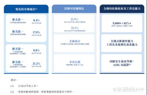 核心競爭力方面,公司作為獨(dú)立第三方Tier1廠商,不參與整車制造,保持與車企的中立合作關(guān)系,更容易進(jìn)入全球供應(yīng)鏈。同時,公司具備硬件、軟件、算法一體化自研能力,主要產(chǎn)品通過ASILD最高等級功能安全認(rèn)證,在可靠性與交付能力上形成壁壘??蛻舾采w全球超80家整車廠,與2025年全球銷量前十車企中的九家、中國銷量前十五車企均有合作。