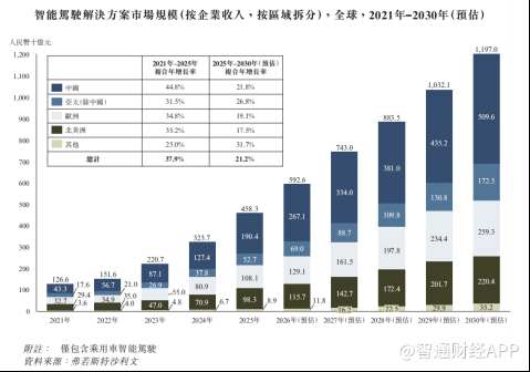 智能駕駛(885736)賽道空間更為廣闊。全球市場規(guī)模從2021年1266億元增至2025年4583億元,預(yù)計(jì)2030年達(dá)11970億元。中國市場由2021年433億元增至2025年1904億元,預(yù)計(jì)2030年達(dá)5096億元,成為全球增長核心引擎。