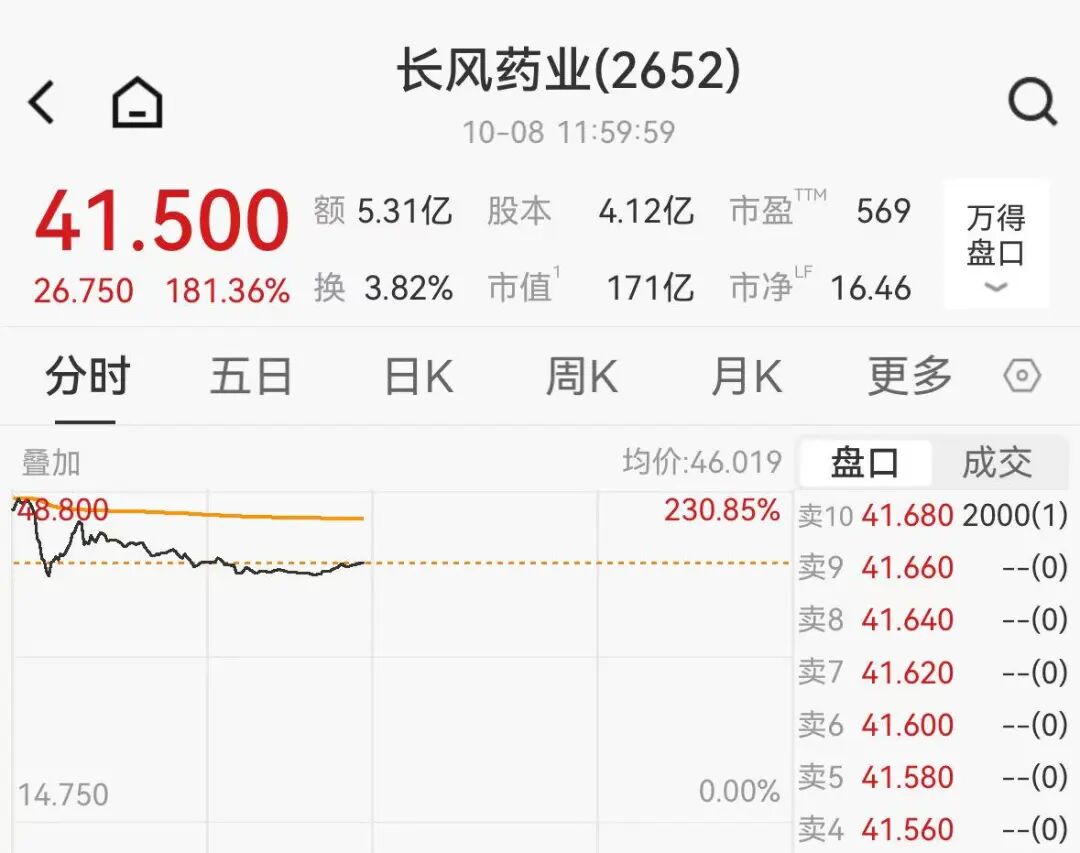 新股長(zhǎng)風(fēng)藥業(yè)(02652.HK)上市首日大幅高開(kāi)逾218%。截至發(fā)稿,上漲近超180%。