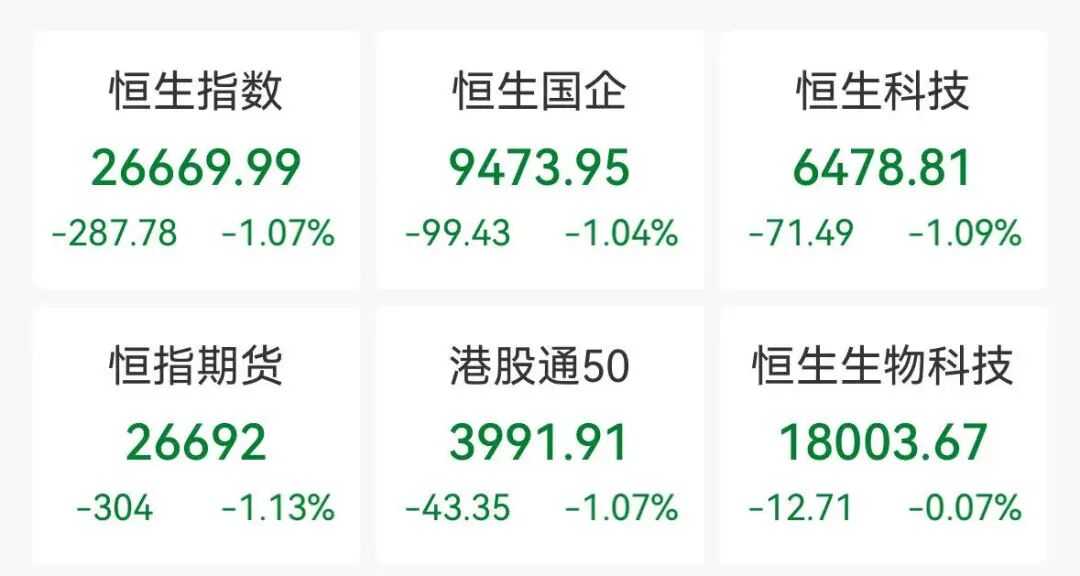 10月8日,港股開(kāi)盤(pán)大幅回調(diào)。截至午盤(pán)收盤(pán),三大指數(shù)跌超1%,其中恒生科技指數(shù)一度跌超2%。