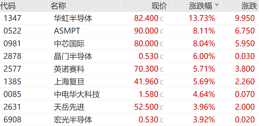 【導(dǎo)讀】市場(chǎng)看好國(guó)產(chǎn)替代及行業(yè)復(fù)蘇,半導(dǎo)體行業(yè)全線走強(qiáng),領(lǐng)漲港股!外資機(jī)構(gòu)唱多中國(guó)