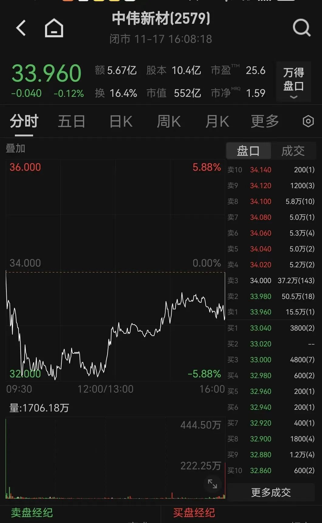 11月17日,中偉新材港股上市交易,遭遇破發(fā)。中偉新材發(fā)行價(jià)為34港元/股,但早盤階段,中偉新材最大跌幅超過5%,最低見32港元/股。午后股價(jià)有所反彈,但收盤報(bào)33.96港元/股,跌0.12%。
