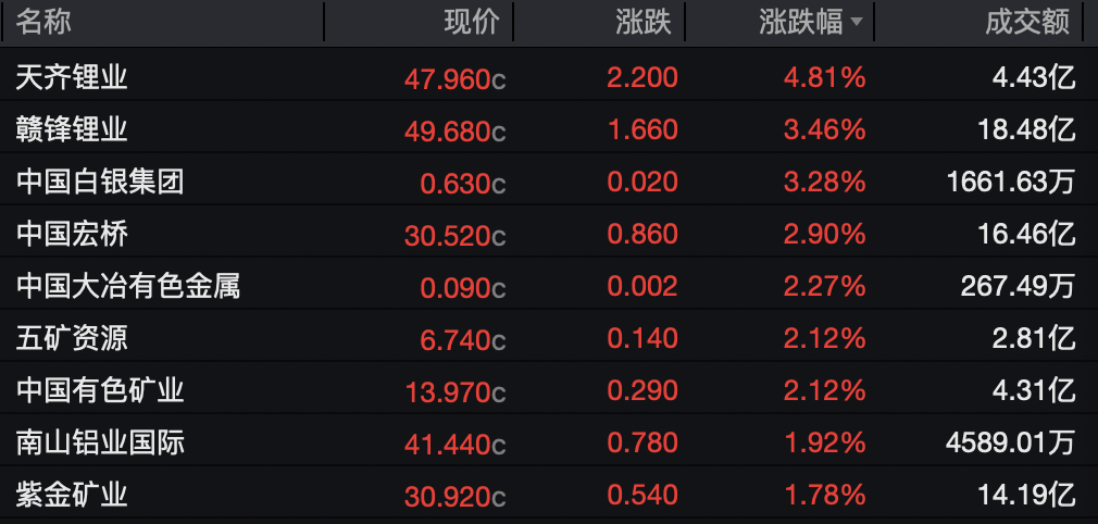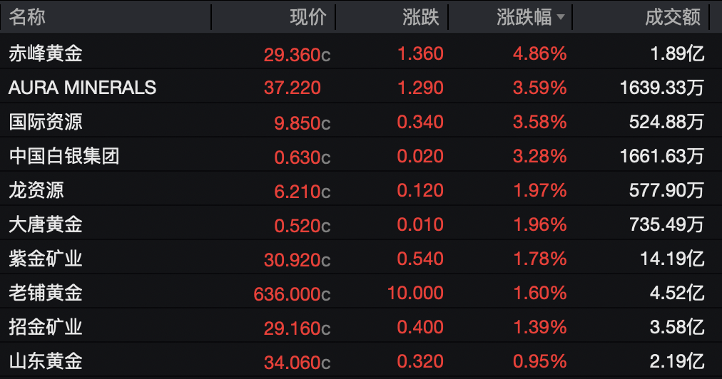 黃金股獲資金青睞,赤峰黃金(600988)、中國白銀集團(tuán)、大唐黃金分別上漲4.86%、3.28%、1.96%;有色板塊,中國大冶、五礦資源、中國有色礦業(yè)等均上漲。