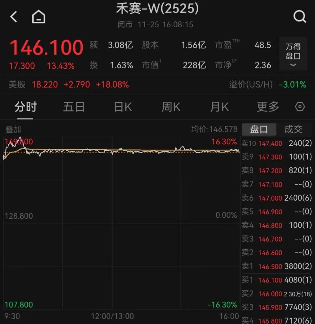 智駕概念股禾賽漲超13%,小馬智行上漲9.32%。