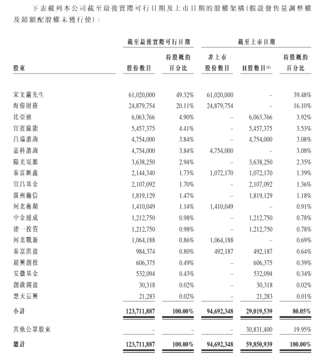 在上市前,比亞迪直接持有海偉股份約3.92%的股份,也是海偉股份的最大外部股東。