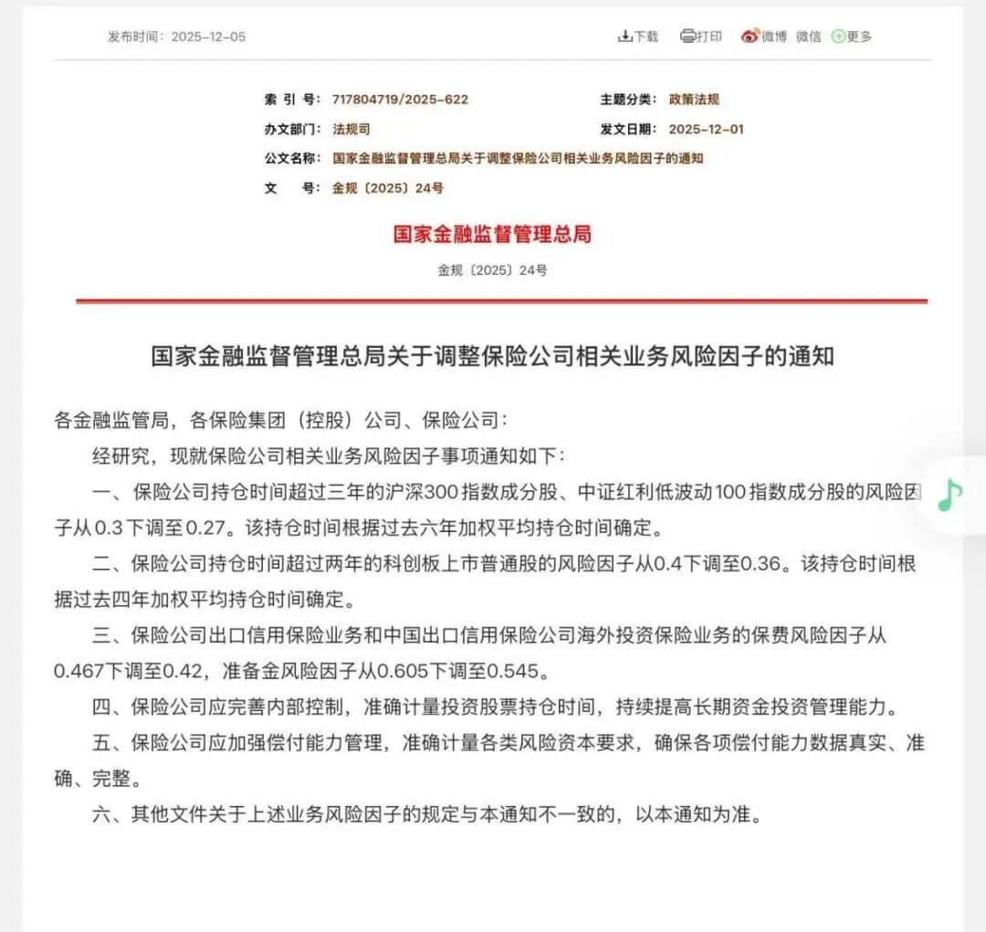 下午3點40分許,國家金融監(jiān)管總局發(fā)布公告,調(diào)整保險公司投資相關(guān)股票的風險因子。