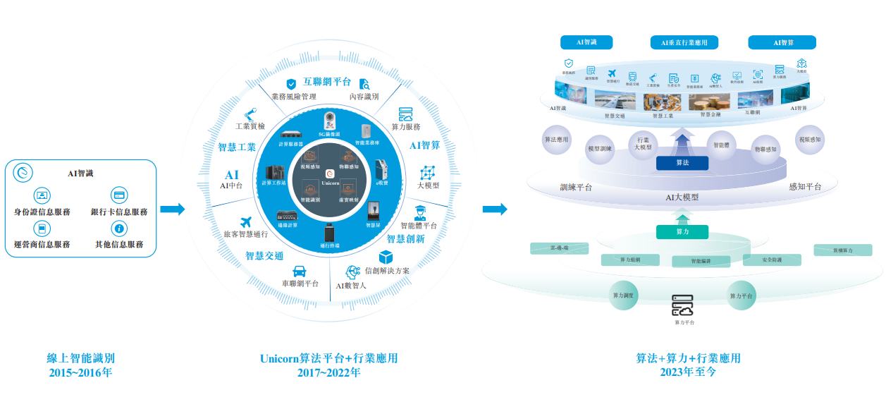 按照公司公開披露,其業(yè)務(wù)主要包括三類:AI智識(shí)、AI垂直行業(yè)應(yīng)用、AI智算技術(shù)服務(wù)。公司最初聚焦AI智識(shí)服務(wù),2017年后逐步擴(kuò)展至算法平臺(tái)及行業(yè)應(yīng)用,2023年進(jìn)一步延伸至AI智算技術(shù)服務(wù)。也就是說(shuō),公司的發(fā)展路徑并非單線推進(jìn),而是從“算法/感知能力”逐步延展到“平臺(tái)+行業(yè)落地+算力服務(wù)”的完整鏈條。