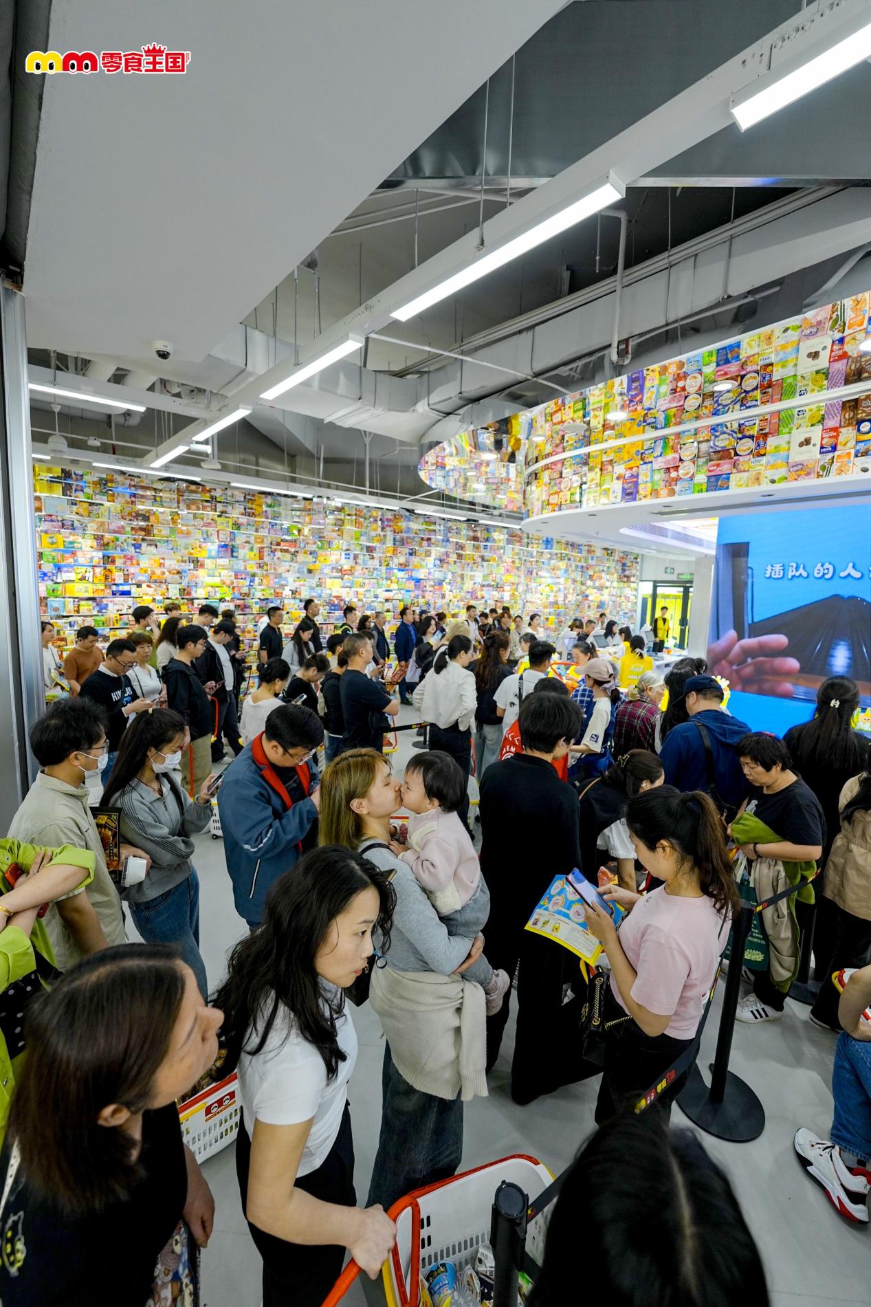 從“零食長廊”進入,在7.6萬顆棒棒糖拼制的封面墻前完成第一站打卡;轉(zhuǎn)入“泡面之城”,在3500多種泡面中尋找記憶與新鮮感;走進“全球零食站”,一次性解鎖近20個國家的可樂與多口味樂事薯片;在面包墻、巨型購物車與60+品牌IP互動區(qū)停留拍照;再到“零食很大”與“零食很小”之間感受尺度反差,從1米高的巨型零食到拇指大小的迷你零食掛件,形成強烈的視覺與體驗對比;最后在“雀神爭霸賽”等互動區(qū)域停下腳步,讓“逛店”變成一場參與感更強的游戲(881275)過程,不少市民表示“每走一步都有驚喜,逛店就像一場零食尋寶”。